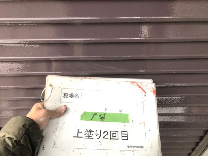 最後に塗膜厚を確保するために上塗りを2回に分けて行いました。ムラが出ないように丁寧に仕上げました。