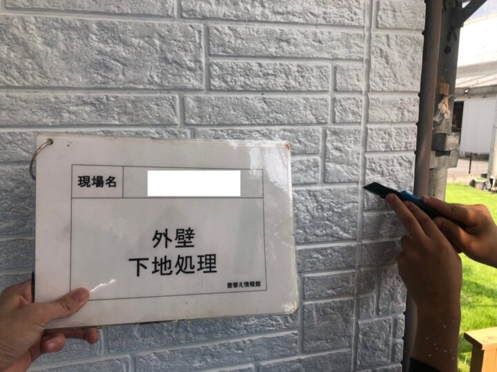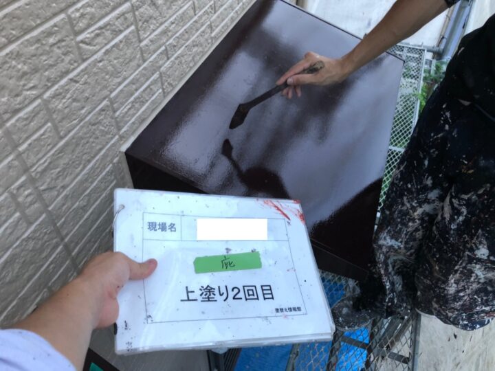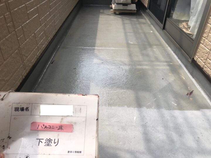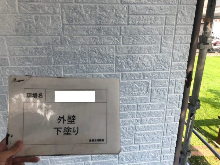下地処理後に下塗りを行いました。下塗りを丁寧に行うことで、上塗り塗料との密着度を高めます。