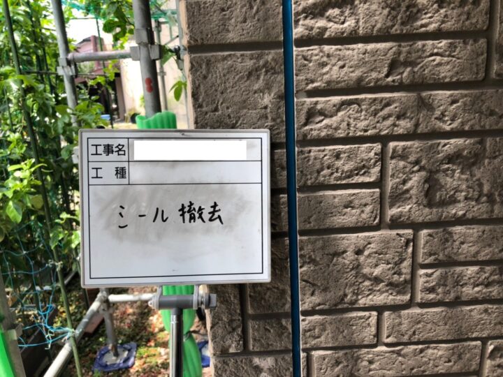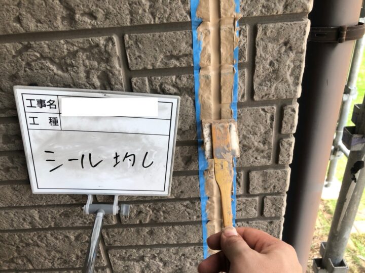 新しいシーリングへと打ち替えるために、まずは古いシーリングを撤去いたしました。