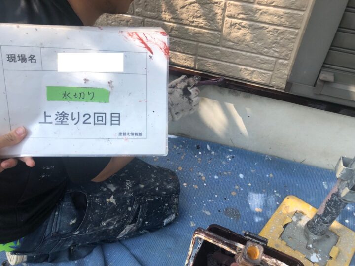 水切り、オーバーハング水切りは、目粗をして、錆止めを塗り、上塗り2回で仕上げました。