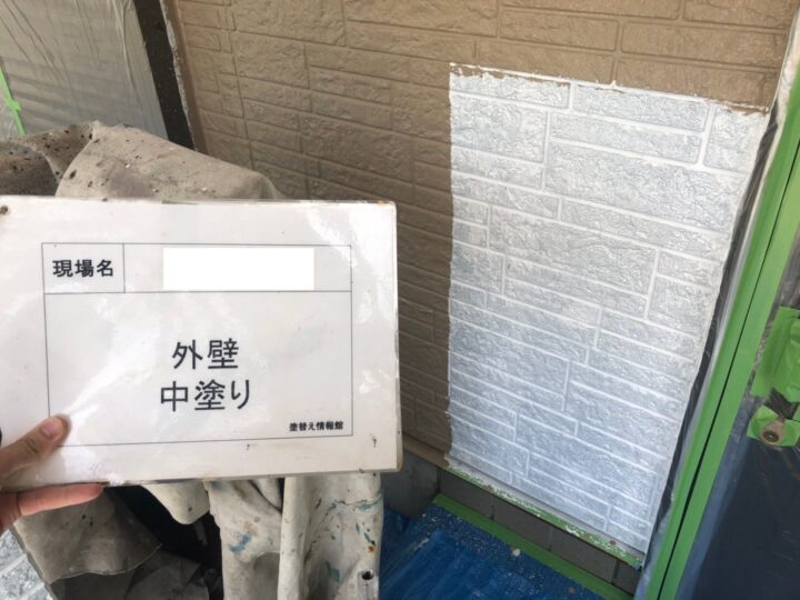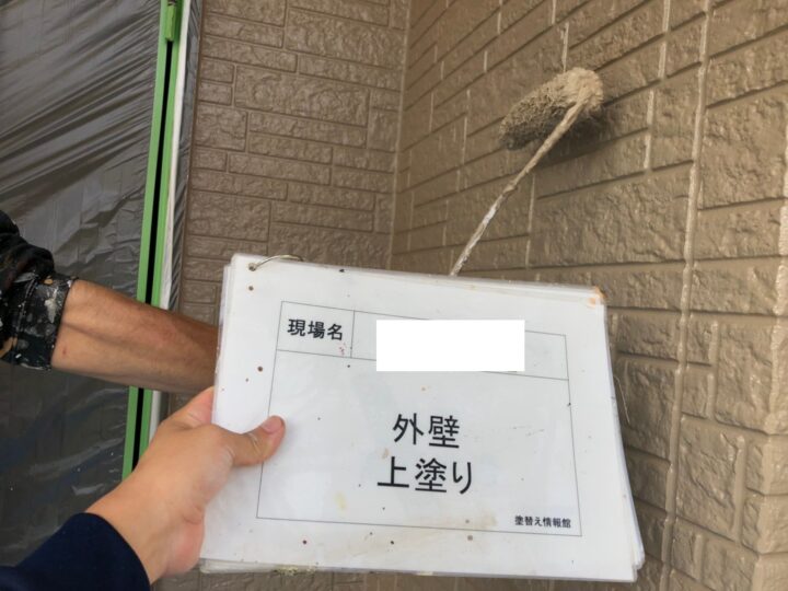 中塗り後、外壁最終仕上げの工程として上塗りを丁寧に行いました。塗膜圧の確保をしっかりと行いました。