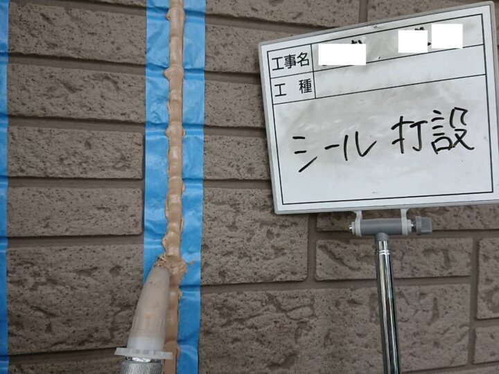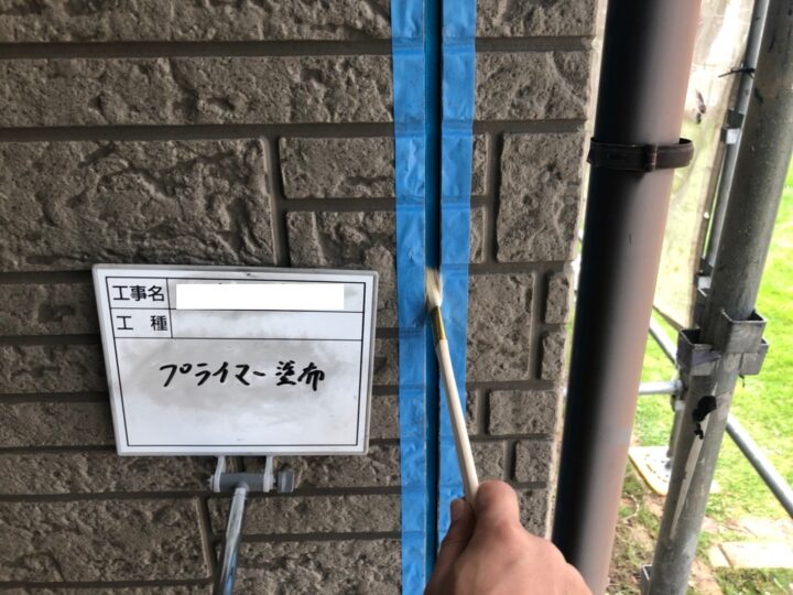 シーリングを施工する場所が乾燥していることを確認した後に、シーリング材が目地に密着するように、プライマーを塗布しました。