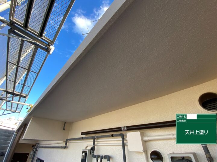 軒天井は、外壁同様に塗装がされていますので、外壁と同仕様で施工を行いました。
