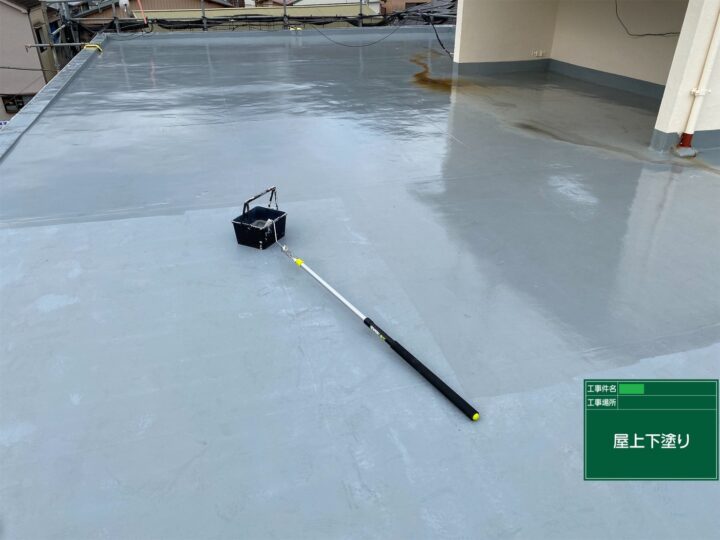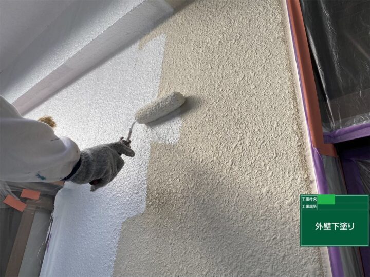 下塗りは、後の塗装の密着を高めるための大事な工程です。しっかりと塗布しました。