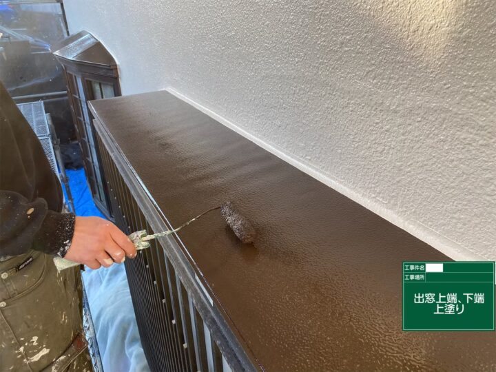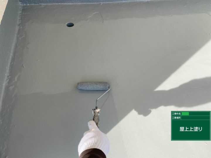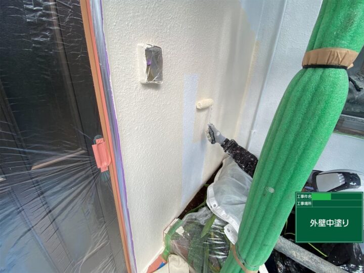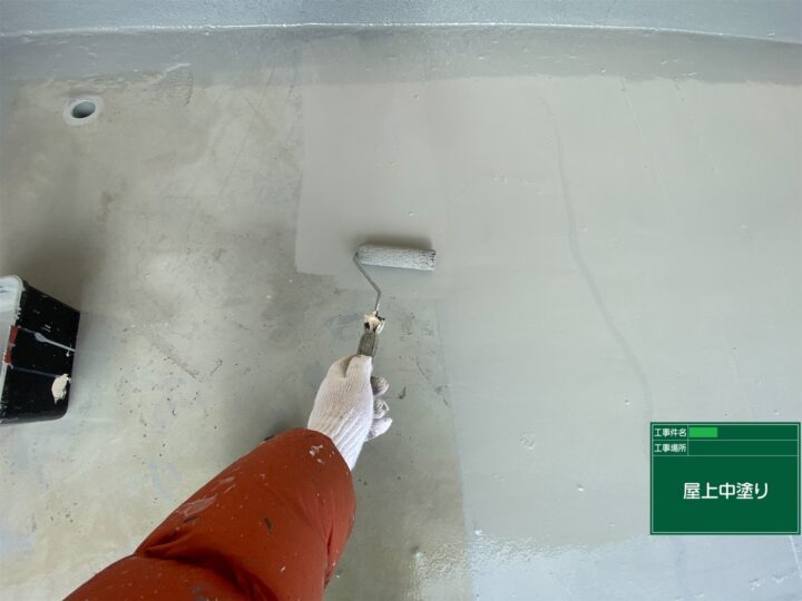 外壁同様3回塗りが基本工程です。丁寧に中塗りを塗装しました。