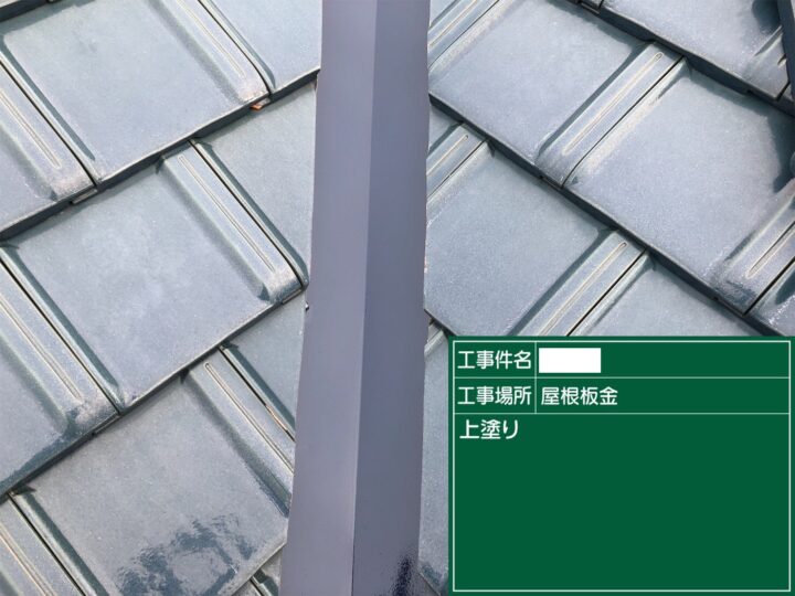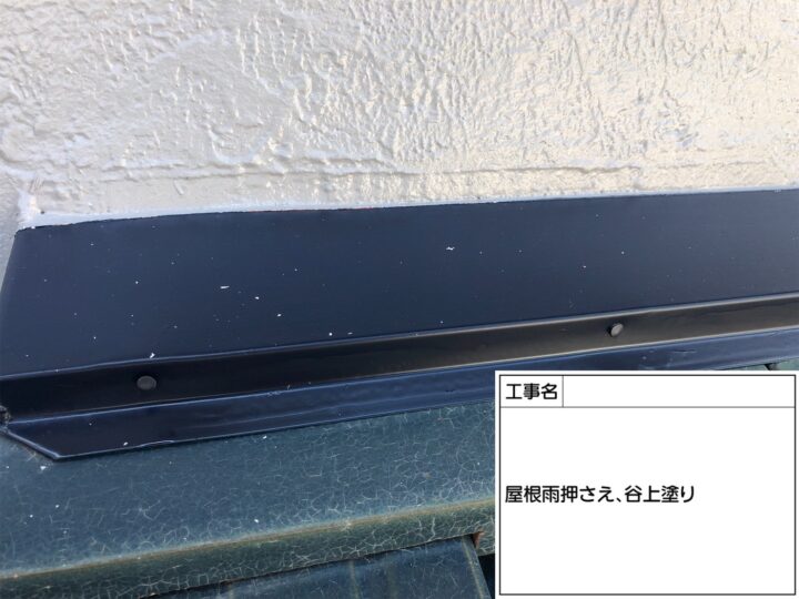 板金部分である谷は、錆による雨漏りのリスクを最大限抑えるため、錆止め塗料を塗布し、上塗り2回で仕上げました。