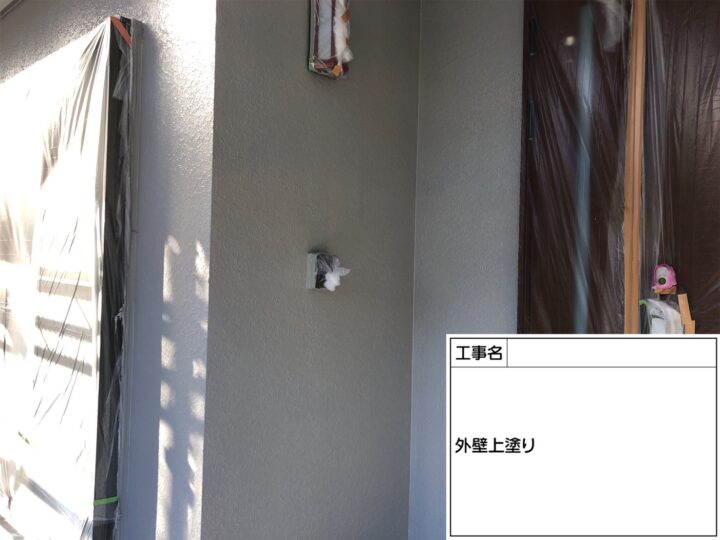 中塗り後、外壁最終仕上げの工程として上塗りを丁寧に行いました。塗膜圧の確保をしっかりと行いました。
