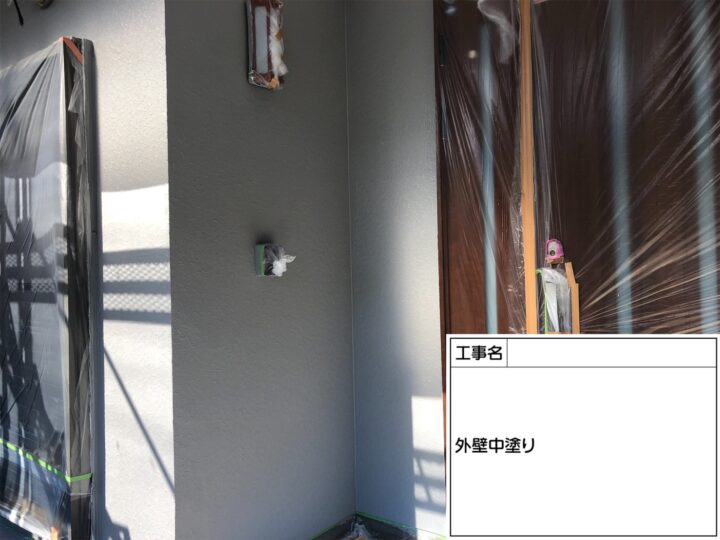 下塗りが乾いたら、塗膜に厚みをもたせて性能や機能を十分に発揮させたり、仕上がりをよくするために中塗りを行いました。