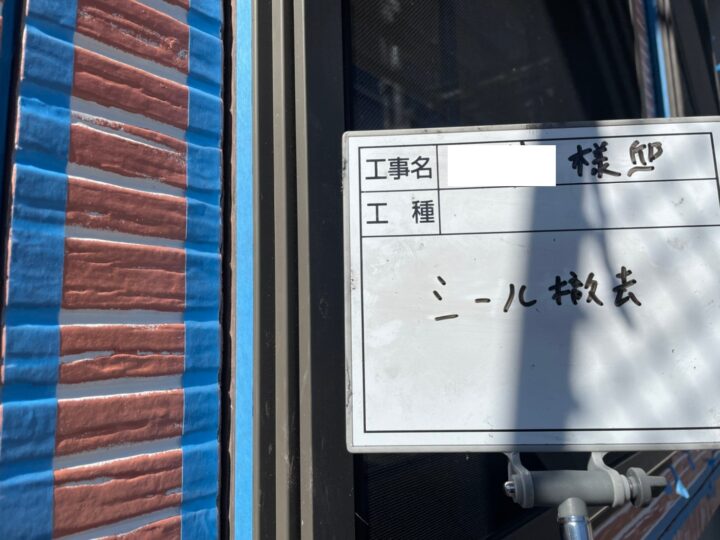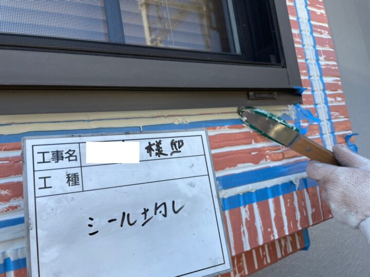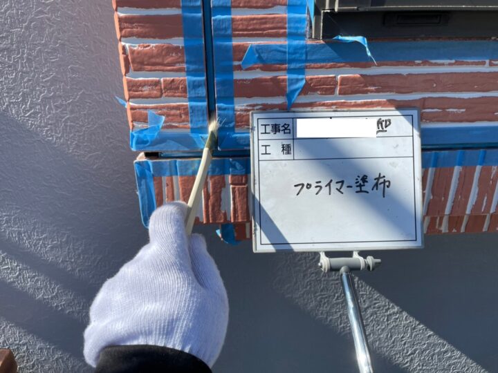 シーリングを施工する場所が乾燥していることを確認した後に、シーリング材が目地に密着するように、プライマーを塗布しました。