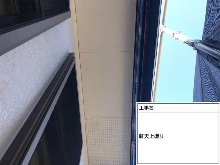 軒天井は、防カビ性能の高いNAD系塗料を2回塗りで仕上げました。