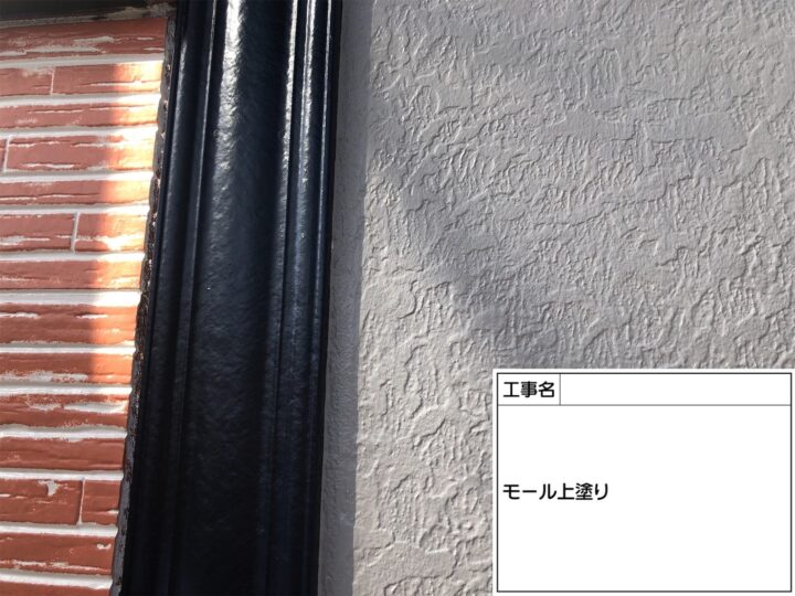 外壁のアクセントになるモールは、下地処理を行い、下塗り・上塗り2回で仕上げました。