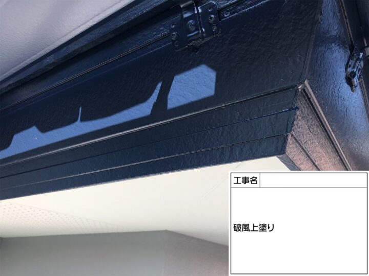 破風板は雨や日光などで劣化をしやすい部位です。下地処理の後、下塗り・上塗り2回でしっかりと仕上げました。