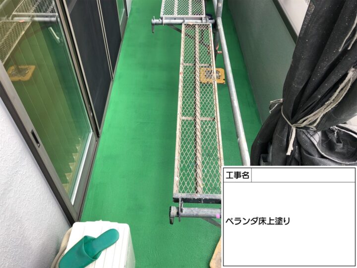中塗りをした上から仕上げの上塗りをしました。上塗りをすることで、塗料本来の性能が確保されます。