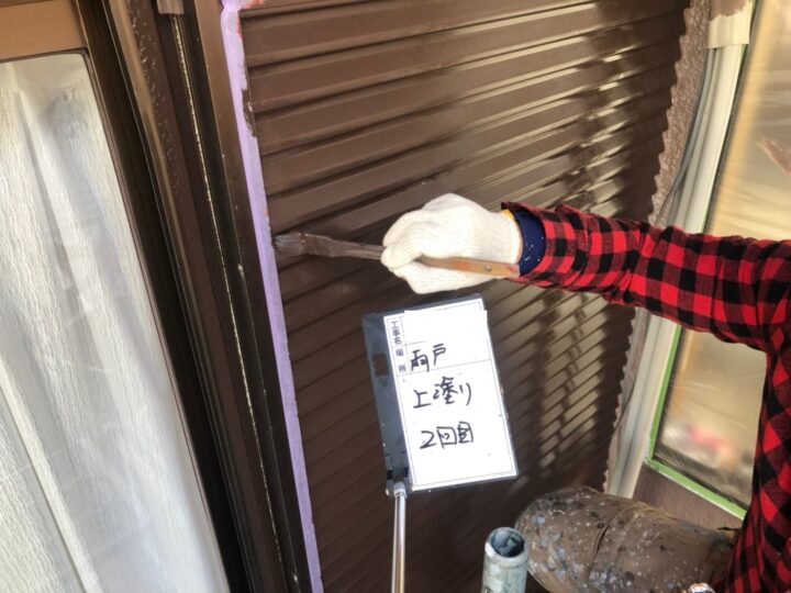 戸袋同様、下地処理をした後、溶剤系の塗料にて塗装を行いました。