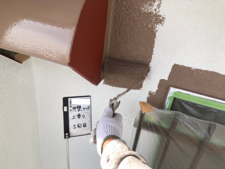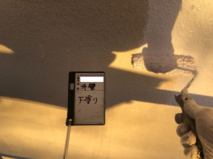 下地処理後の下塗りを行いました。中塗り塗料との塗り残しを無くすため、下塗りを丁寧に行いました。