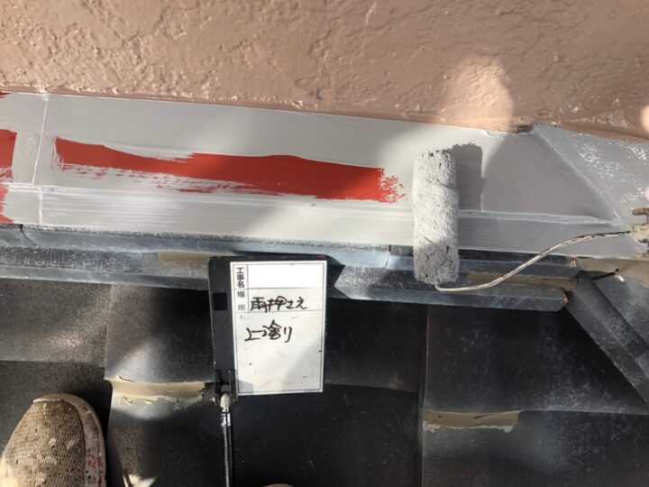 雨押えも同様、錆止めを塗り、上塗り2回で仕上げました。