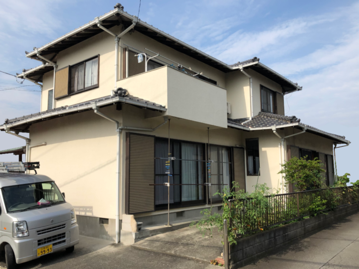 現場調査の結果、屋根のひび割れも見つかった為、外壁はVカット工法を利用して塗替えをし、屋根は瓦の為、塗装は行わず傷んだ場所は瓦交換で補修致しました。