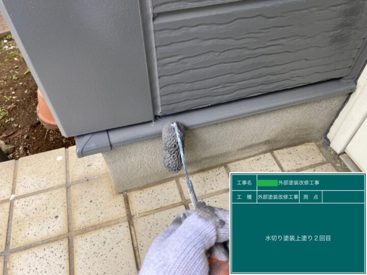 水切りは目粗をして、錆止めを塗り、上塗り2回で仕上げました。