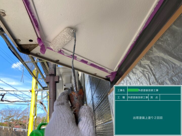 出窓の上端・下端も下地処理をし、錆止めを塗った後、上塗り2回で仕上げました。