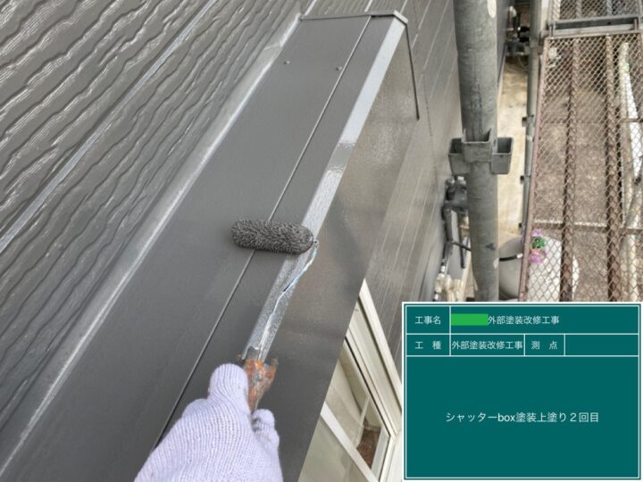 シャッターBOXは錆止めを塗り、上塗り2回で仕上げました。