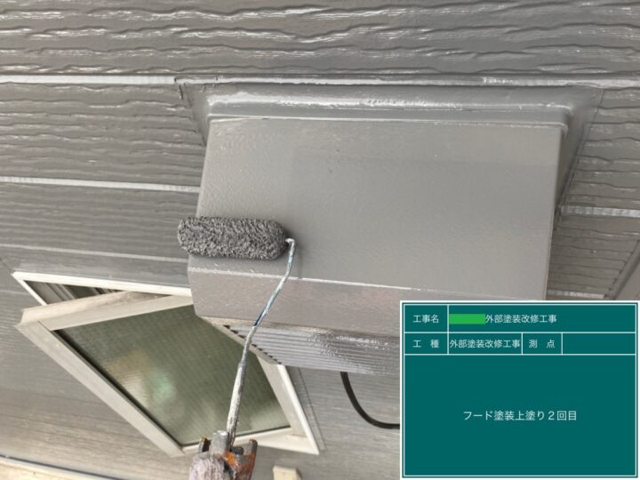 換気フードも下地処理をし、錆止め塗料を塗り、上塗り2回で仕上げました。