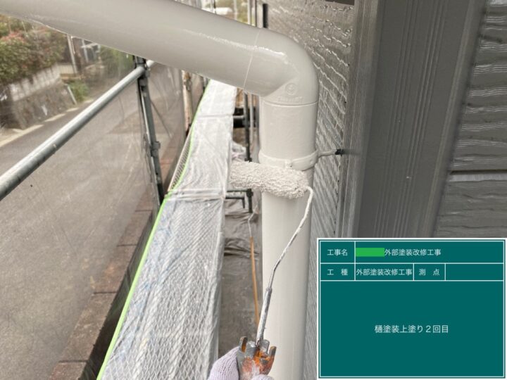 雨樋は下地処理をした後、上塗り2回で仕上げました。