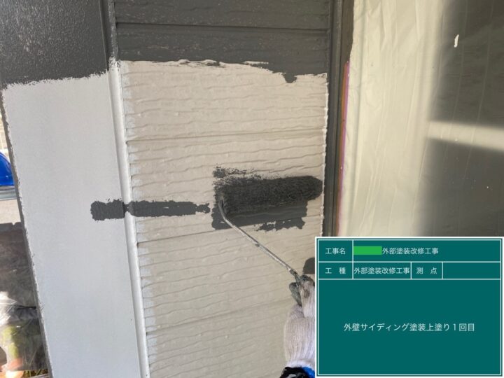 モルタル部分にはSK化研のソフトサーフSGを、サイディング部分はミラクシーラーエコを使用しました。