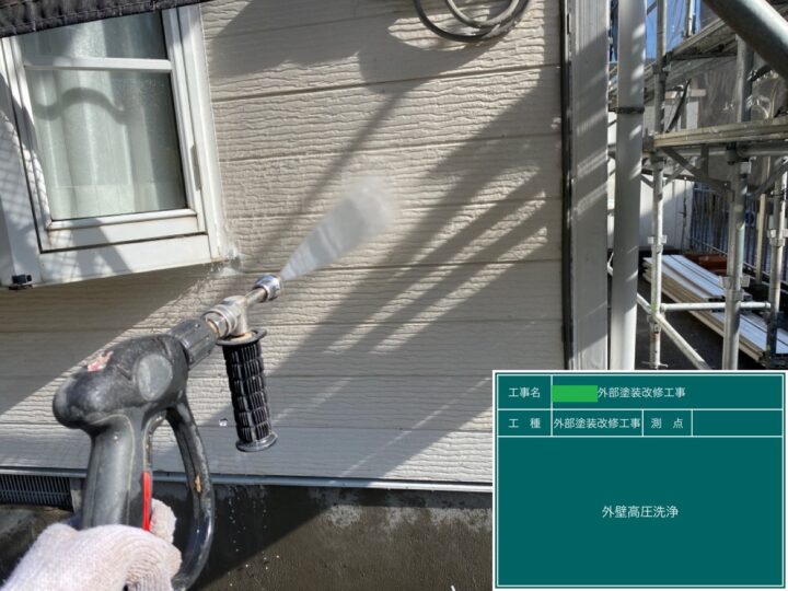 外壁は入念に高圧洗浄しました。汚れやコケ等を徹底的に落としました。