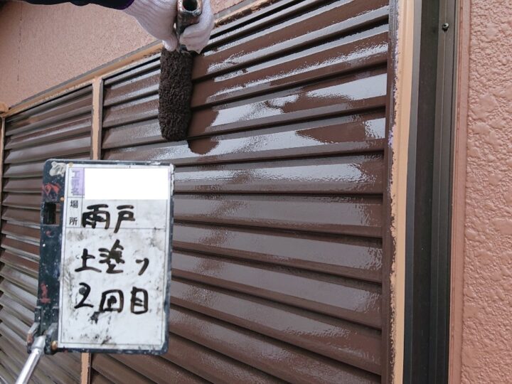 スチール製の雨戸は、下地処理し、錆止めを塗り、上塗りを2回全体へ塗装しました。