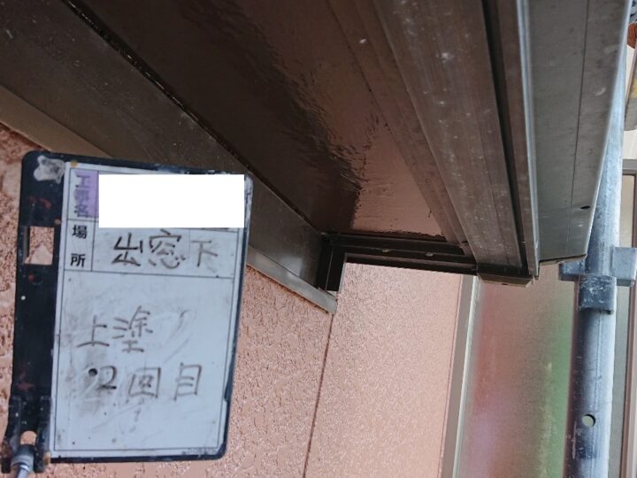 出窓の下端も同様、下地処理をした後、錆止めを塗り、上塗り2回で仕上げました。