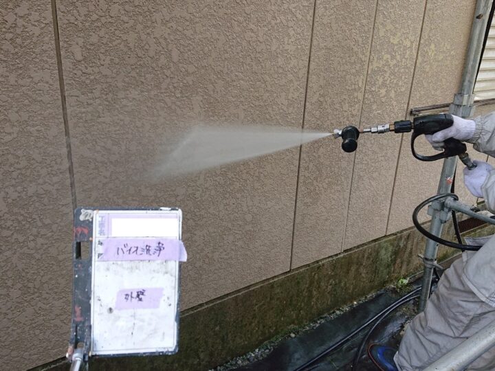 地域柄コケやカビが繁殖しやすい地域だったので、薬品を使ったバイオ洗浄も行いました。