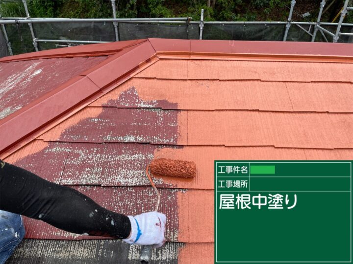 上塗りでは中塗りのときに残してしまった、塗り残しや塗りムラなどを丁寧に補修し徹底的に屋根塗装を仕上げました。