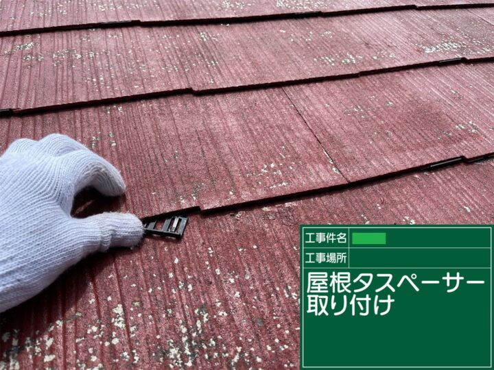 下塗り後に、上下の板の隙間が塗料で埋まってしまい、毛細管現象による雨漏りを防ぐために、タスペーサーをW工法で取り付けしました。