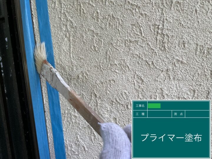 マスキングテープで養生した後、施工するシーリング材が剥離しないように丁寧にプライマーを塗りました。