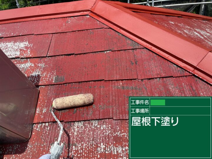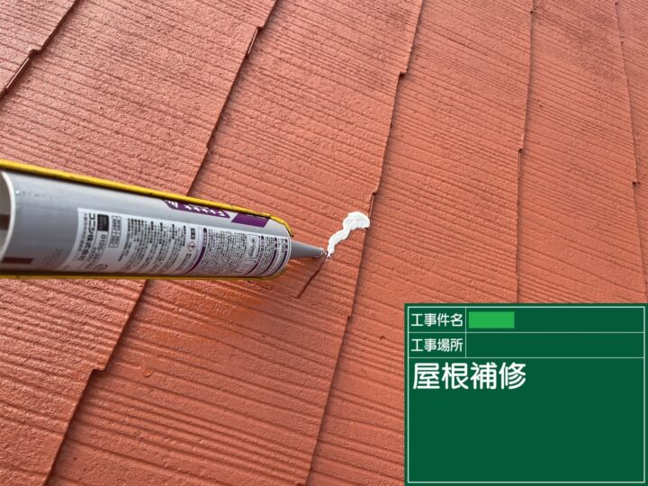 鉄部には錆止めを入れたり、割れてしまっている箇所には、シーリングでクラック補修を行ったりなど、屋根塗装の下地処理を行いました。