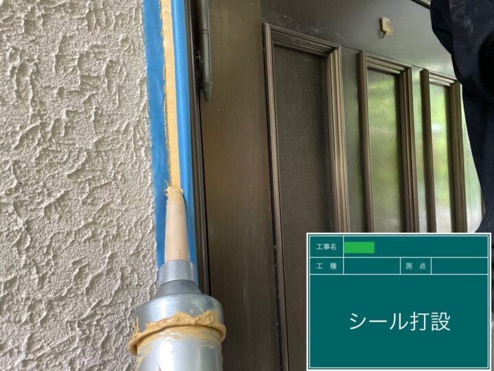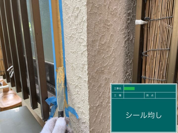 プライマーを塗布した後、シーリング材を打設しました。外壁塗料の耐久年数に合わせ、今回はNB変成シリコンを使用しました。