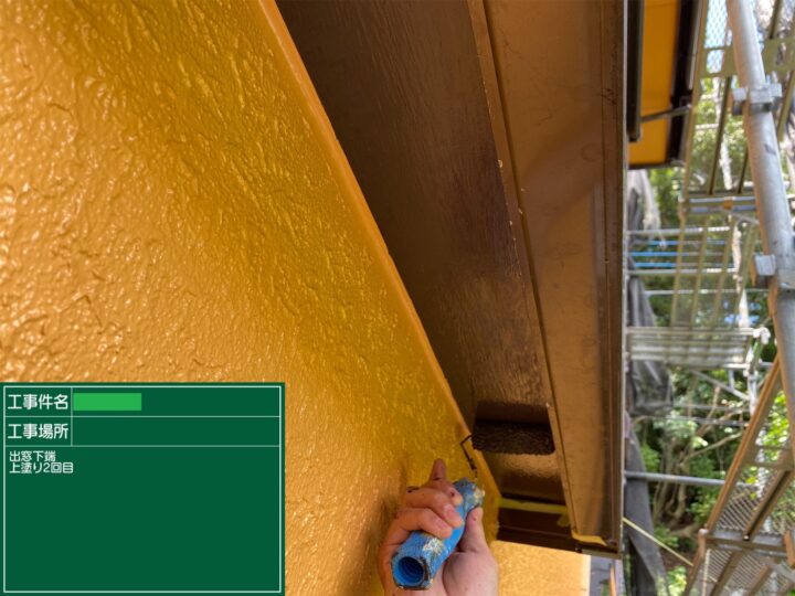 出窓の上端と下端も下地処理をした後、錆止め塗料を塗布して上塗り2回で仕上げました。