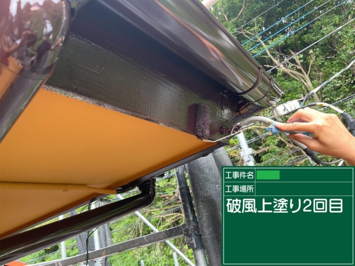 木で出来た破風板・鼻隠し、しっかりと下地処理(ケレン)し、下塗りを塗り、上塗りを2回全体へ塗装しました。