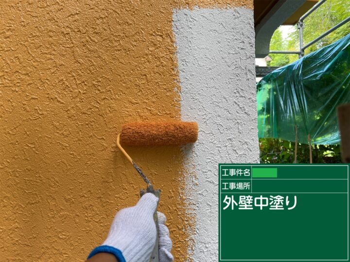 中塗りでは下塗りのときにできた凹凸などを平坦にしたり、塗膜を分厚くしたりなど、仕上げに向けて丁寧に塗装を行いました。