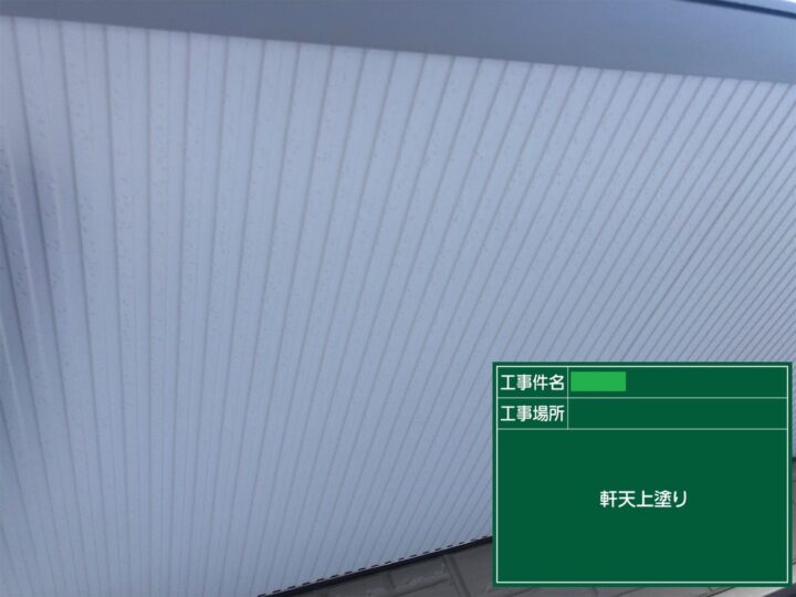 防火サイディングの軒天井は、防カビ性やヤニ止め効果の高い、高密着性NAD系艶消し塗料を2回塗りで仕上げました。