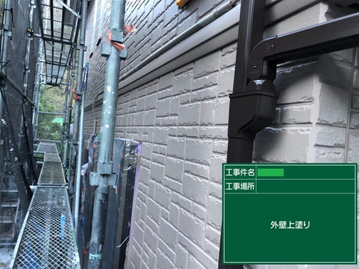 中塗り後、外壁最終仕上げの工程として上塗りを丁寧に行いました。