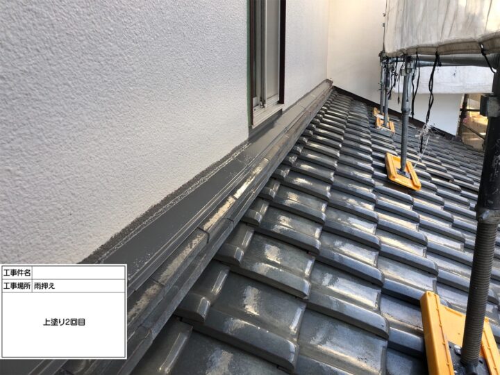 中間水切りは、錆止め塗料を塗布し、上塗り2回で仕上げました。