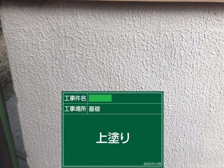 基礎はクラックが見受けられましたので、下地処理としてシーリングで補修した後、コンクリートの中性化やひび割れを防ぐ、基礎用の塗料を、ゆず肌仕上げで仕上げました。