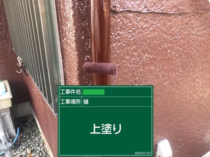 塩ビ製の雨樋、下地処理をし、全体へ上塗りを2回塗りました。