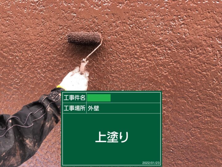 上塗りのを2回塗ることで防水や劣化防止など長期において耐久性が強くなります。