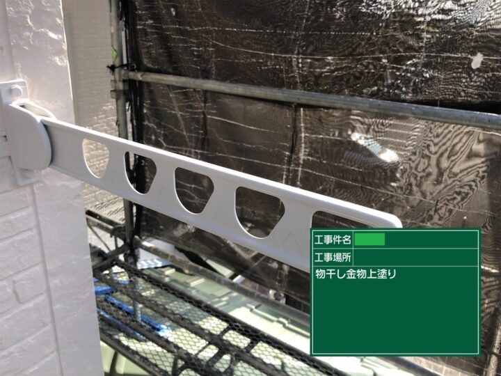 物干金物も美観を損ねており、塗膜が剥がれている箇所が見受けられましたので、