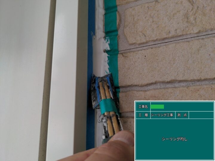 打設したシーリング材を丁寧に均しました。均し終えた後、マスキングテープを剥がし完成しました。