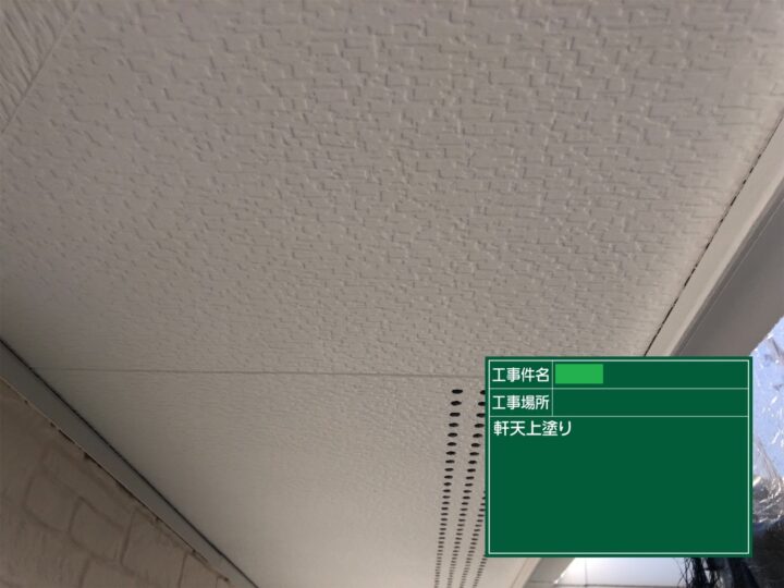 また、軒天廻り縁は下地処理をし、錆止め塗装後、上塗り2回で仕上げました。