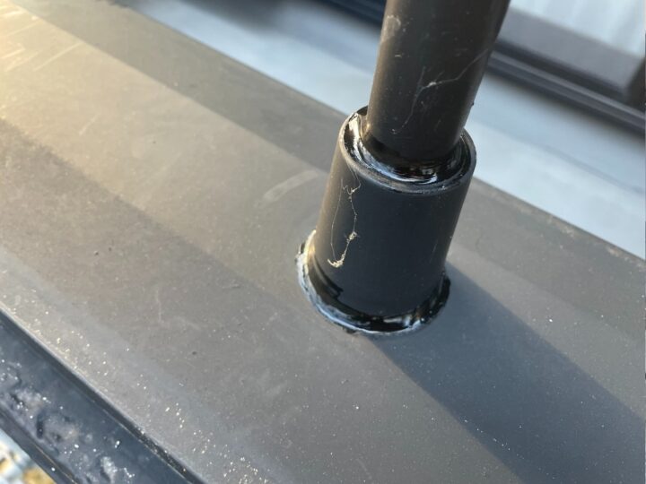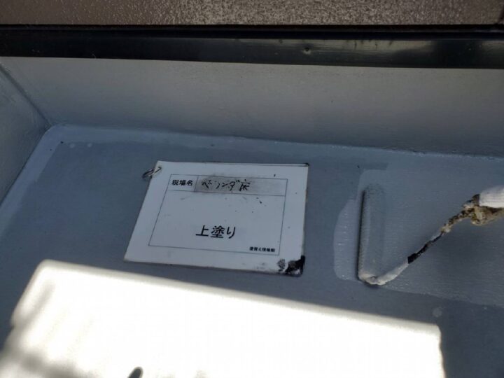 バルコニーの床は加硫ゴムシート防水となっています。防水層の劣化は見受けられませんでした。シート防水用のトップコート(ルーフガード骨入り)にて塗装します。