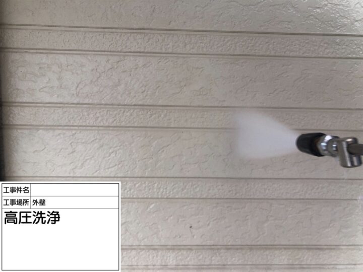 高圧洗浄を行うことで、付着した汚れを丁寧に落とすことができ、あとの外壁塗装に繋がります。